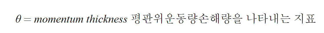 momentum이 평판의 수직으로 확산되면서 확장되는 두께를 나타내고 운동량감소를 나타냅니다.