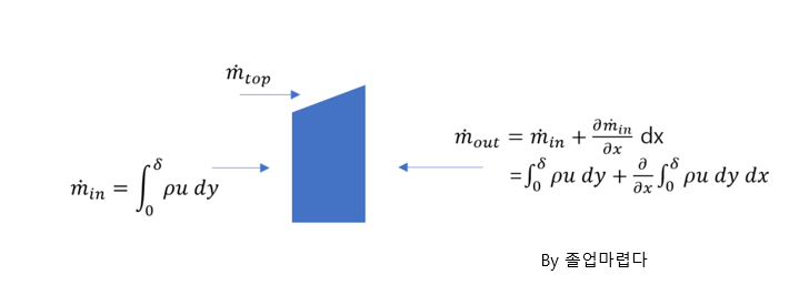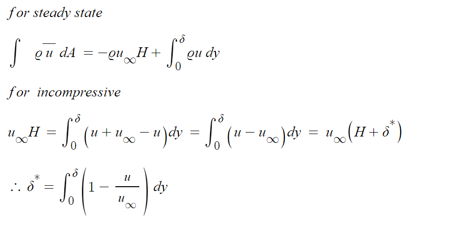 U_inf*H의 체적유량으로 들어오던 초기유량이 평판의 점성에 의해서 속도가 줄게되고 이에 따라